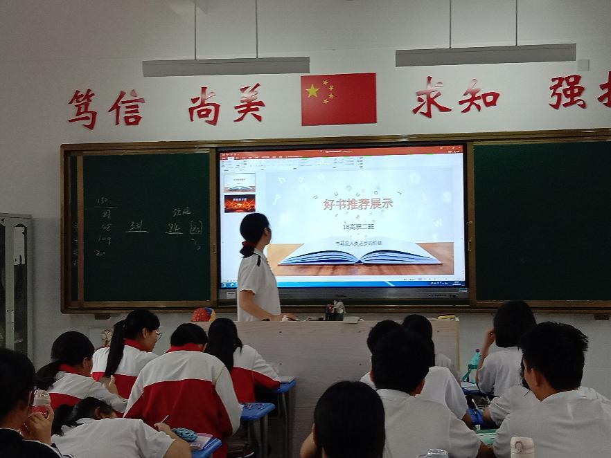 立身以立学为先,立学以读书为本。在五个月的超长寒假中,学校积极响应“停课不停学”号召,向全体学生发布“战役书单”,鼓励大家把阅读纳入每日计划,给自己充电。2020年6月11日晚自习,18高职2班在班主任陈香秀老师的组织下,由姜颖同学主持,开展了“好书推荐”暨假期阅读成效展示会。