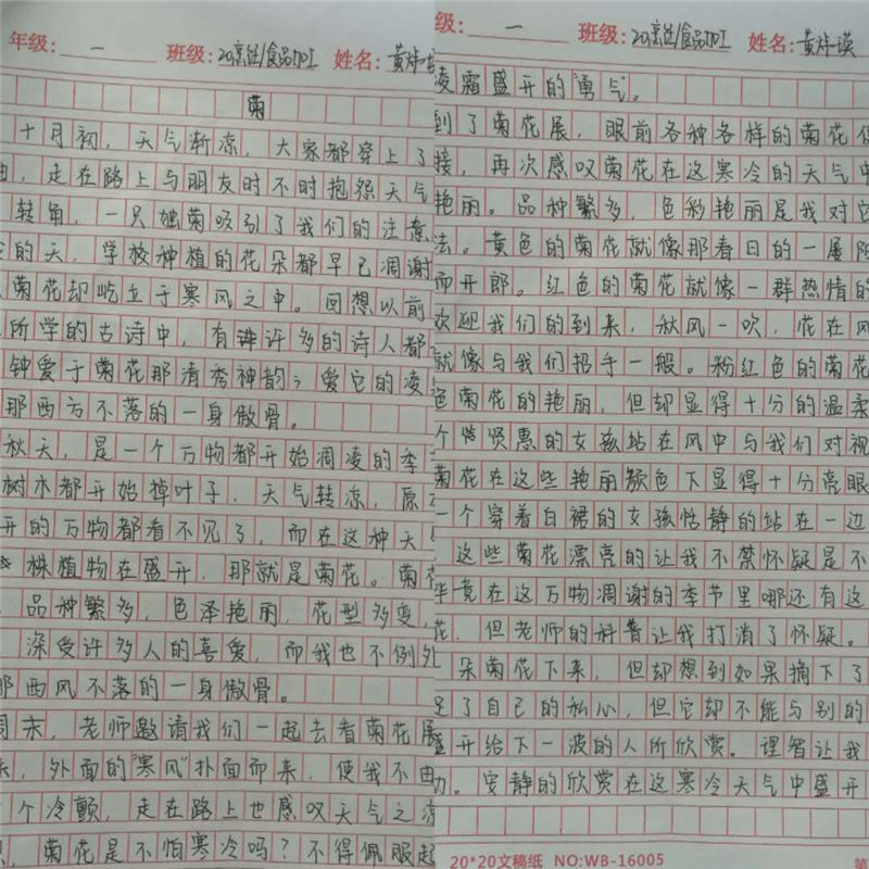 书香墨香|盛世难掩笑口开,秋菊相伴作文忙 ——2020级食品加工五年专班看菊、赏菊、写菊活动