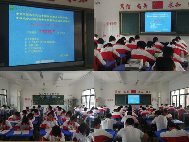 黄花不负秋,与秋作光辉。欣赏完多姿多彩的秋菊,同学们心情愉悦地回到了课堂,开展了一场以“菊花”为主题、体裁不限、500字以上的作文竞赛。
